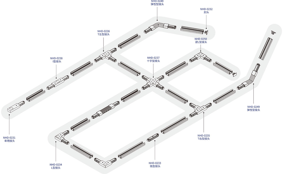 軌道反直角回路用,內(nèi)部附有引線端子和接地端子,可做電源接入插頭。